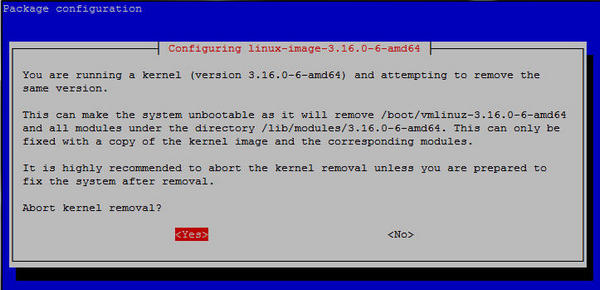 接下来的安装过程中,部分系统可能会有如下提示,提示删除旧的内核,是否取消。