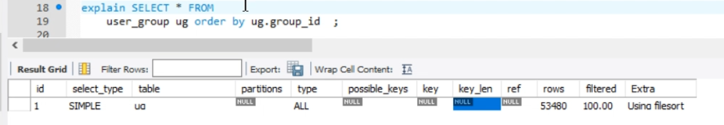这两种方式是mysql自动选择的,当加大max_length_for_sort_data能放下中间表示就会使用实现二,否则使用实现一,select只查询出你需要的字段,这个也是原因之一。