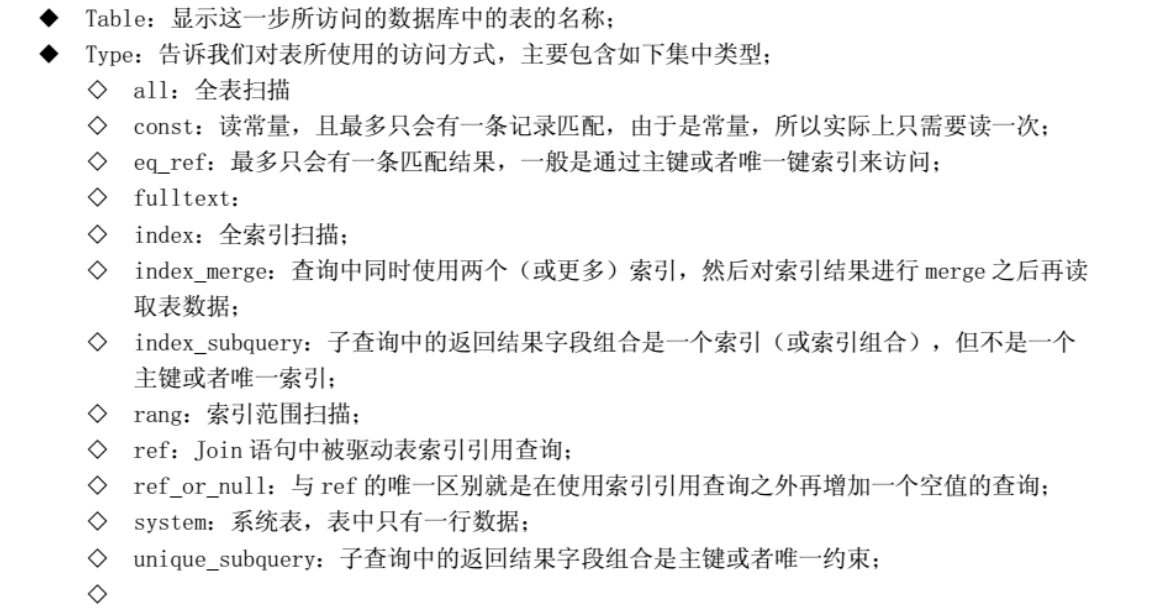 unique_subquery,index_subquery,range,index_merge,index,AL