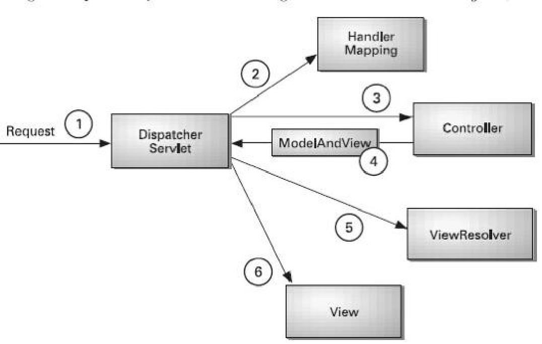 引用 spring in action 上的一张图来说明了 springmvc 的核心组件和请求处理流程: