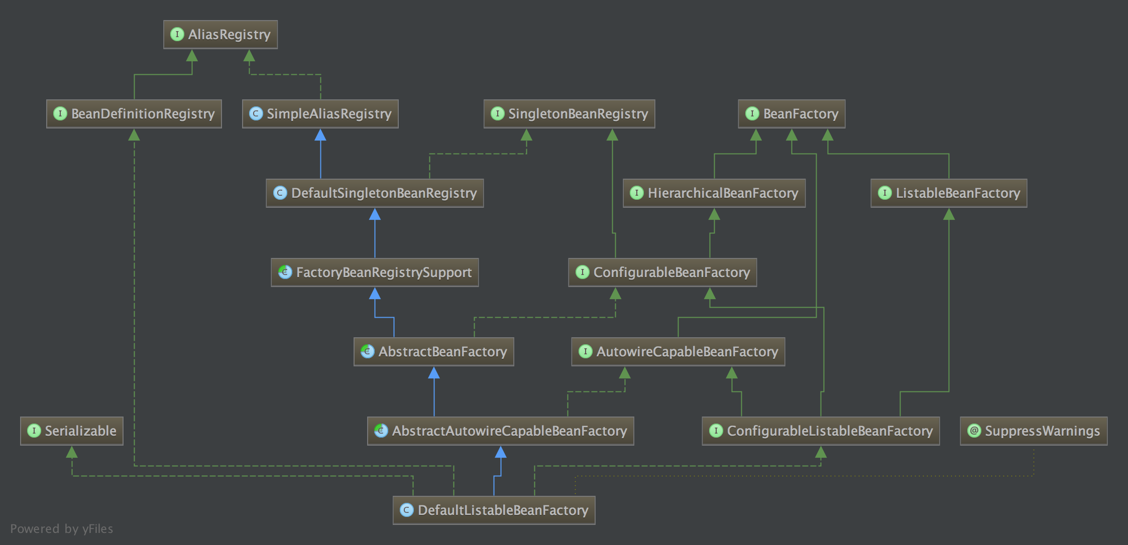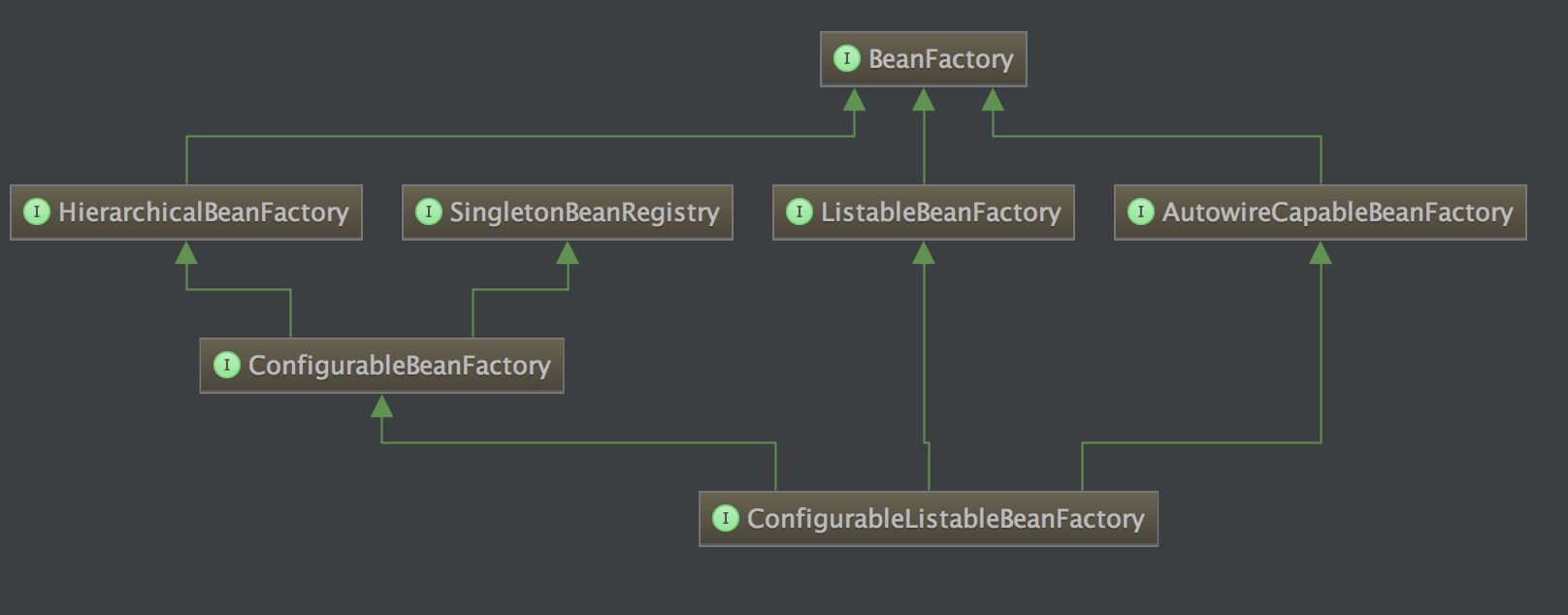 ConfigurableListableBeanFactory接口是继承AutowireCapableBeanFactory,ListableBeanFactory,ConfigurableBeanFactory三个接口的一个综合接口