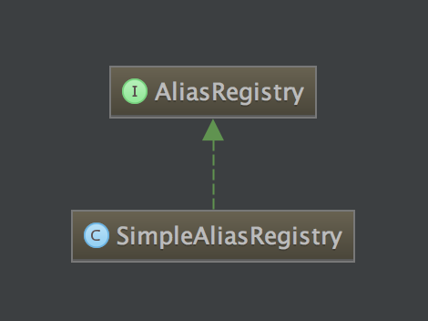 AliasRegistry接口是别名注册接口,SimpleAliasRegistry类是简单的实现别名注册接口的类。