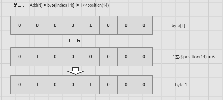int arrayIndex = num >> 3; // num%8得到在byte[index]的位置