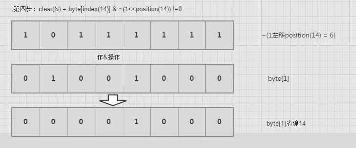 //将1左移position后,那个位置自然就是1,然后对取反,再与当前值做&,即可清除当前的位置了.