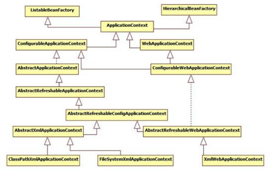 使用的 XmlWebApplicationContext 就属于这个继承体系,还有 ClasspathXmlApplicationContext 等,