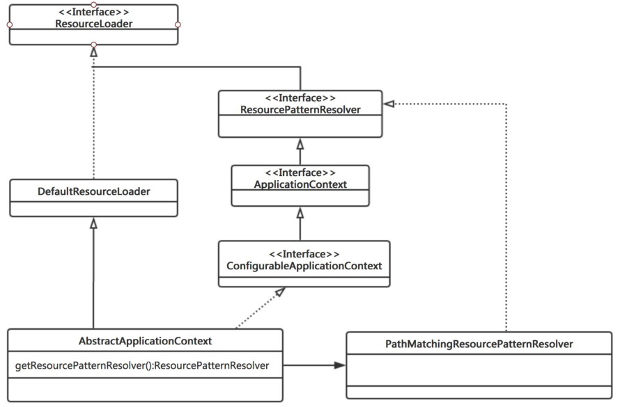 认的实现,同时上下文本身就给出了 ResourceLoader 的实现,可以从类路径,文件系统,URL 等方式来