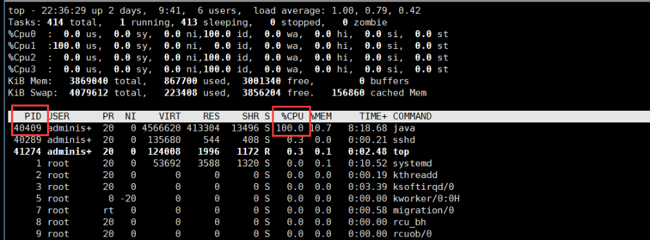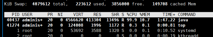 - top 找到 CPU 高的进程 (原理:方法是由线程执行的,线程是在进程下的,找到进程下 cpu 最高的线程就能定位到方法)