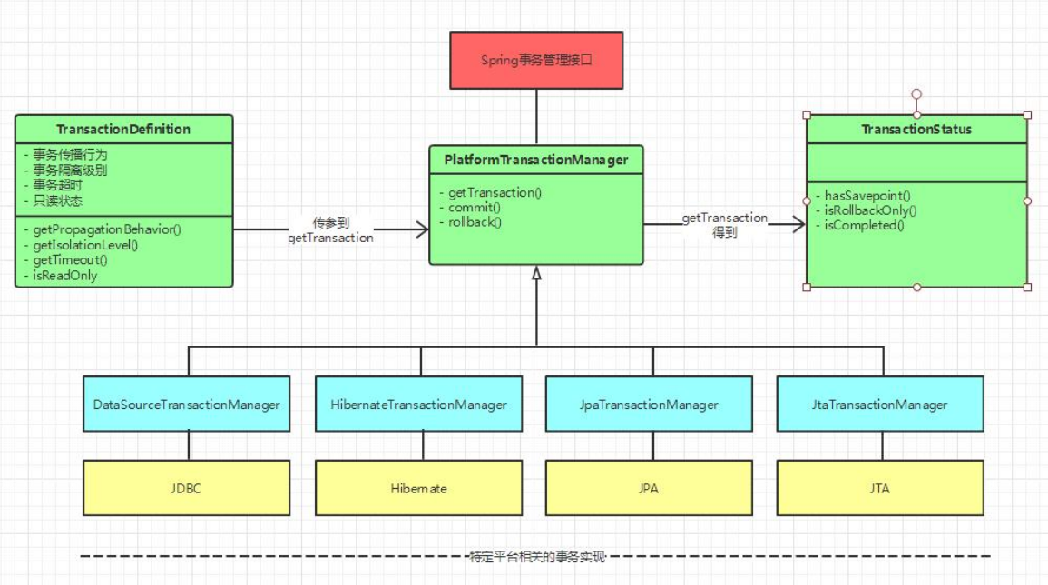 使用 Spring 的事务管理功能后,我们可以不再写步骤 2 和 4 的代码,而是由 Spirng 自动完成。